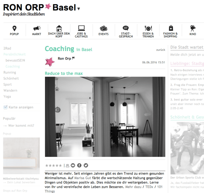 Die wertschätzende Haltung Dingen, Objekten und Kleidungsstücken gegenüber färbte über die Jahre auf Marisa Gut ab. Sie genoss es, ihre drei Chaos-Haufen zu eliminieren (einer neben dem Kleiderschrank, einer auf dem Bürotisch – und der dritte, daran kann sie sich gar nicht mehr erinnern, wo der war). Erst da habe sie gemerkt, wie viel Energie ihr der ganze Plunder geraubt hatte. «Irgendwann kam bei mir der Wunsch auf, diese Erfahrung mit anderen zu teilen – als Simplify Komplizin», erklärt Gut die Entstehung ihres Startups. Was sie als Coach besonders auszeichnet ist, dass sie beide Seiten kennt: Zum einen das überfordernde Chaos, zum anderen das souveräne, zufriedene Leben. Sie weiss, wie schwer es ist, sich von Dingen zu trennen, in denen man noch Verwendungspotential sieht, oder die mit Erinnerungen verbunden sind. Und sie weiss auch, dass es sich lohnt, sie trotzdem loszulassen: «So bekommen wir Platz fürs Wesentliche: Menschen, Ideen, Erlebnisse».